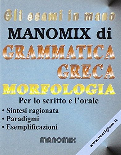 Here you can read or download Read Online Manomix di grammatica greca. Morfologia. Sintesi ragionata, paradigmi, esemplificazioni. Per il Liceo classico PDF PDF Online for free. To read PDF Manomix di grammatica greca. Morfologia. Sintesi ragionata, paradigmi, esemplificazioni. Per il Liceo classico Free, you don't need a tablet or e-reader. Browse your favourite ...